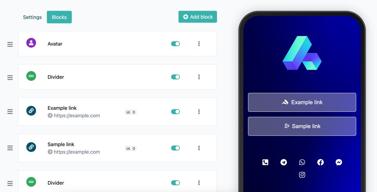 Create your own unique & highly customizable bio link page with ease.